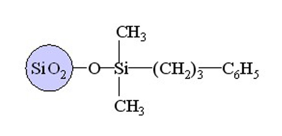 GP-Phenyl填料上鍵合有苯丙基團(tuán),可與帶環(huán)狀結(jié)構(gòu)的化合物發(fā)生相互作用。該色譜柱可用于分離酸性、中性和堿性化合物。