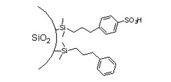 HP-SCX固定相以硅膠為基質(zhì),是強陽離子交換相與疏水相的混合模式,具有磺酸基和苯基官能團混合化學(xué)結(jié)構(gòu)。這種混合結(jié)構(gòu)使其不僅可用于分離陽離子/堿性和含氮化合物,也對多種弱陽離子、中性有機化合物等具有合適的保留作用。Sepax HP-SCX固定相上均勻的聚合鍵合涂層使其在各種分離條件下都具有良好的穩(wěn)定性。